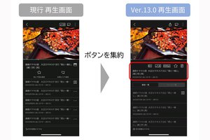 Ver.13.0では、「番組開始通知」「ホーム画面」「再生画面」「ピクチャ・イン・ピクチャ再生」「ニコニコ実況連携機能」の機能向上のアップデートが施されている。