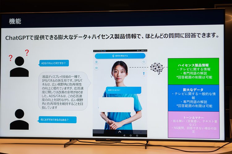 同社の新たな試みとして、ChatGPTをベースにハイセンスの製品情報を学習させた「AI接客サービス」を一部家電量販店にて導入することを決定した。