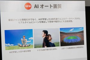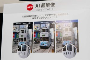 最新世代の映像処理エンジンによって高画質機能も進化している。4Kアップコンバート機能である「AI超解像」では、放送番組からネット動画までAI画像解析を使用することでクリアかつ精細感のある超解像処理を実現。背景や被写体を分析し、それぞれに最適な超解像処理を実行することで、シャープネスなどの破綻の発生しない自然な精細感を再現するとしている。