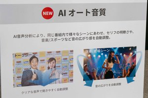 「Medalist S5X」は音質面でも効果を発揮しており、音質モード「AIオート」ではセリフはクリアで聴き取りやすく、音楽やスポーツのシーンでは広がりのあるサウンドを再生するなど、リアルタイムで分析し、さまざまなシーンに合わせたサウンドに自動で調整する。