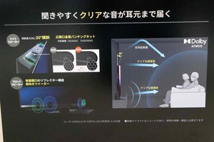 「Medalist S5」は音質面でも効果があり、音質モード「AIオート」ではセリフはクリアで聴き取りやすく、音楽やスポーツのシーンでは広がりのあるサウンドを再生するなど、リアルタイムで分析し、さまざまなシーンに合わせたサウンドに自動で調整する。