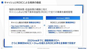 「ポートフォリオの見直しを進めていく上では、各事業の競争力を見定めていかなくてはならない。撤退も含めた盤本的な手を打っていく」と2026年度までに課題事業ゼロを目指す。強固な財務体質・収益体質を構築するため、キャッシュおよびROICをもとに事業部単位で厳格に管理を行っていく。