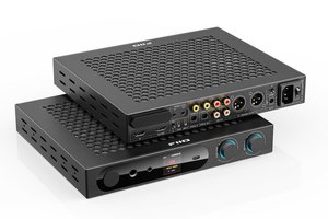 ほか、12Vトリガーやグラウンドリフトスイッチ、1.3型フルカラーディスプレイ、デュアルインジケーターライトを搭載。赤外線リモコンが同梱し、また「FIIO Control」アプリからの操作にも対応する。外形寸法は約250×225×36.7mmで、質量は約1.8kg。
