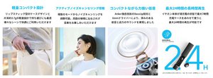 また、リップスティック型ケースをブランド初採用。小さなバッグやポーチの隙間にフィットするほか、ポケットに入れてもスッキリ収まるスリムなデザインとのことで、カラーは定番のホワイト/ブラックに加え、パステル調のピンク/ブルーの計4色を展開する。