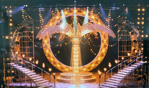 まずはNHK毎年の目玉番組、紅白歌合戦のセットについて。今から28年前の1996年の第47回分セットではすべて造形物を使用したリアルなセットを構築していたが、1999年開催の第50回ではセット内で初めてLEDウォールを導入。2007年の第58回においてはLEDウォールでの多彩な映像演出を行うなど、1年1年進化していた。