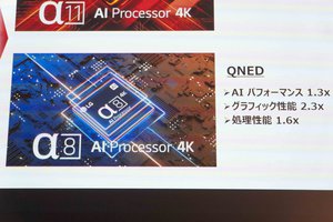 表示された絵の中から好みの表現を数回選択するだけで、約8,500万通りのパターンからユーザー好みの画質調整を自動で施してくれる「パーソナルピクチャーウィザード」機能も備えている。また、フレーム補間をオフにし、映像制作者の意図通りの原画質を再現する「FILMMAKER MODE」、視聴環境の明暗を把握して映像のコントラストを最適化する「AI輝度」の映像機能もカバーしている。HDRフォーマットは、Dolby Vision/HDR10/HLGに対応。