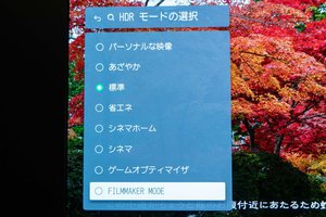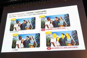 映像コンテンツをスタンダード/シネマ/スポーツ/アニメーションの4種類に分類し、さらに映像シーンをスタンダード/夜景/街並み/自然で判別して自動最適化を図る「自動ジャンル選択/シーン検出」、映像制作者の意図を組んだ原画質を再現する「FILMMAKER MODE」、視聴環境の明暗に応じてコントラストを最適化する「AI輝度」は全シリーズに搭載されている。
