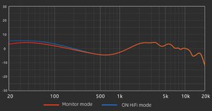 ハウジング上部には、周波数特性を切り替えられるディップスイッチを搭載。透明感や高い解像感が特徴の「モニターモード」と、中低域が豊かで心地よいリスニングが可能な「Hi-Fiモード」の2つの音色が選べる。
