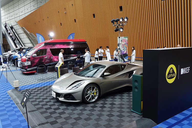KEFは、ロータス用の車載オーディオシステムをデモ。車載専用バージョンのUni-QドライバーをはじめとするKEFの各技術を搭載した「LOTUS Emira」のサウンドを体感できる。