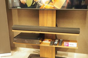 サウンドバーはワンボディタイプの「SR-X40A」と、サブウーファーが付属する「SR-B40A」を展示。SR-X40Aはテレビとの組み合わせでデモもおこなわれているほか、上述のシネマDSPを活用したワイヤレスヘッドホン「YH-L700A」も体験できる。