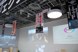 コーナー内にはさらに、天井にシーリング型が2台、床に短焦点型が1台展示されている。モバイルタイプとは購入層や購入動機が異なり、シーリング型は事前に検討された上で、購入意欲を持って来店されるという。新築や転居のタイミングが多く、「機種の選択肢が増えれば、需要ももっと膨らんできます」と予測。