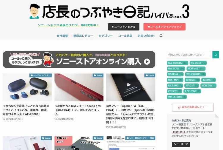 「WF-1000XM5」「LinkBuds」など話題のイヤホン・ヘッドホンはじめ、スマートフォン「Xperia」、さらにはミラーレスカメラ「α」や各種レンズまで、ソニー製品の濃密な実機レビューがマニアの間でも秘かに(?)話題を呼ぶブログ「店長のつぶやき日記ハイパぁー…3」をご存じだろうか。