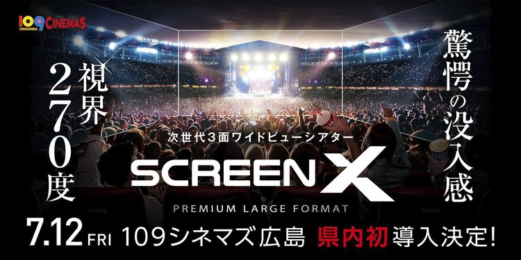 (株)東急レクリエーションは、109シネマズ広島に、広島県では初めてとなる最新スペック版「ScreenX」を7月12日(金)より導入する。これを記念して同館では、7月10日(水)、11日(木)にプレオープン特別上映を実施する。
