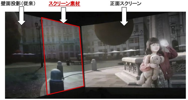 「ScreenX」は、正面のスクリーンに加えて左右の壁面にも映像を投写し、視界の270度すべてで臨場感あふれる映画鑑賞が可能だとするマルチプロダクション映画上映システム。