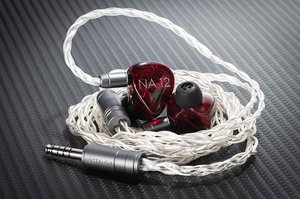「NA12」は、バランスド・アーマチュア型ドライバーを低域と中域に2基ずつ、高域に1基の計5基、超高域に静電ドライバーを2基搭載したハイブリッドモデル。周波数特性は15Hz - 40kHz、インピーダンスは8Ω@1kHz、感度は116dB@1kHz,1mW。