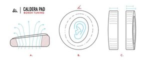 イヤーパッドには、本モデル用に調整を施したブランド独自の「Caldera Pads」を採用。耳の形状にあわせて回転する楕円形の開口部を備え、厚みや高さも部位ごとに調整することで隙間なくフィット。さらに独自のひだ付きデザインにより、空気の流れもスムーズに保つとしている。