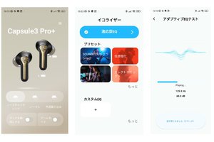 iOS/Android OS対応の専用アプリ「PeatsAudio」と連携することで、10バンドEQ機能や、聞こえ方に合わせて適切に音質調整する「アダプティブEQ」機能などの音質カスタマイズが行える。