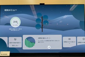 従来モデルから搭載されている「ECOメニュー」では、省電力設定や明るさセンサーの調整が手軽に操作できる仕様になっていたが、新しく消費電力をリアルタイムで可視化できるようになったほか、年次/月次/週次/日時で使用電力量を確認できるようになっている。