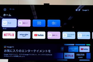 OSはGoogle TVを採用しており、YouTube/Prime Video/Netflix/Disney+/Apple TV/U-NEXT/ABEMA/DAZN/hulu/FODといったVODサービスを手軽に楽しむことができる。GoogleアシスタントやChromecastもフォローする。