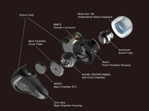 筐体の前室側を樹脂、後室側を亜鉛合金、さらに音調ノズルをアルミ製とすることで筐体の共振点を分散。素材固有の不要な響きを抑制するとしている。また、後室側に第3世代のETL音響モジュールを搭載。大音量時の歪みの防止と共に付帯音を吸収し、全帯域に渡ってクリアで立体感のある自然な音の広がりを再現するという。
