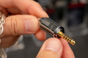 前の出展時からアップデートが行われており、端子の根元部分に段差がつけられている。これによって、ケースを装着したプレーヤーでもプラグを奥まで差し込めるようになった。