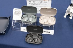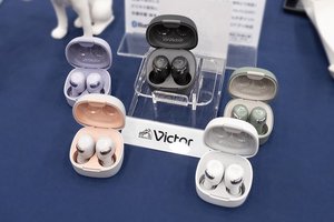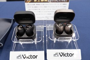 JVCケンウッドはビクターブランドから、完全ワイヤレスイヤホンを中心に、有線イヤホン、ワイヤレススピーカーなどを展示している。
