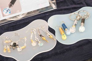 また、イヤホンの修理で破棄になった故障パーツを、ピアスやキーホルダーといったアクセサリーにカスタマイズすることができるサービス「accecle」も展示。サステナビリティなサービスの一環としてアピールしていた。