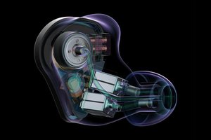 低域の再生を担うダイナミック型ドライバーは、本モデルのようなハイブリッド式マルチドライバー製品専用に開発を行ったという。振動板は素材にナノクラスポリマー使用し、柔軟で弾性の高いエッジシステムとロングストローク設計を特殊加工で組み合わせている。