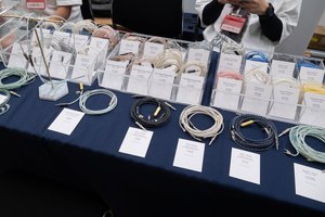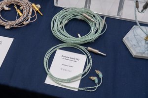 DAPとアンプの接続などに使用するインターコネクトケーブルも、さまざまな種類の導体を用いた試作品を展示。金メッキ純銀導体、パラジウムメッキ導体、高純度銅/金メッキ純銀/純銀の3種混合導体などなど、同社のイヤホン/ヘッドホン用ケーブルと同じ素材が用いられている。これらも年内に順次発売する予定とのことだ。