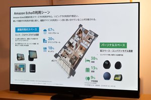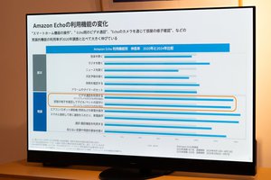 まず同社が示した日本国内におけるEchoシリーズの普及状況の統計によれば、2018年の販売開始から今年まで約7年の間に、Echoを使用する月間アクティブユーザー数が9.9倍まで成長。特に日本では、ディスプレイ搭載型デバイスの普及率が非常に高いのだという。