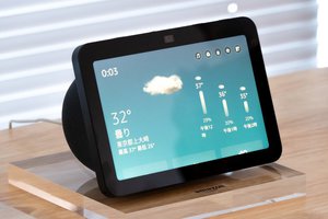 リビングなど広めのスペースに設置することを想定した、「Echo Show」の中型モデル。前面には8.0型 HDタッチディスプレイ、本体後部には2.0インチ(約52mm)のネオジウムスピーカー2基およびパッシブラジエーターを搭載。ドルビーアトモスなどの空間オーディオフォーマットには対応しないものの、独自の「空間オーディオ技術」により、広がり豊かなステレオ再生が楽しめるとする。