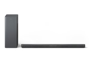 サウンドバー本体には105mm×30.7mmのフルレンジスピーカーユニット2基と、42mm×30mmのトゥイーター2基を搭載。ワイヤレスサブウーファーには115mm×90mm径のウーファーを2基搭載している。最大出力は320W。