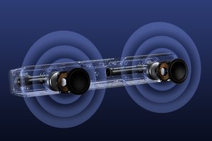 QS30は、52mm フルレンジ・ドライバーを2基搭載し、合計出力5Wで駆動。2基のドライバーを独立させた構造と、左右対称に配置したバスレフポートにより、コンパクトながらもパワフルなサウンドを実現している。