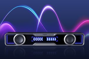 バッフル部分には、数層の光リボンのようなライトを搭載。特許取得済の「TempoAbyssテクノロジー」を採用しており、ユーザーが好みのライトモードを選択することで、音楽と同期したライティングを楽しめるようになっている。また、スピーカー本体の上部になるボタンからライティングを調整でき、プリセットされた7種類のライトエフェクトからモードを選べるようになっている。