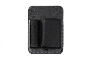 DAC POCKET LARGEは、スティック型(ドングル型)USB-DAC収納ケース「DAC POCKET」のサイズバリエーションモデル。既存モデルと同様、内蔵磁石によってMagSafe対応スマートフォンとスムーズに着脱可能で、2つのポケットそれぞれにUSB-DACとケーブルを収納することができる。