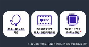 1台で最大2番組同時録画が可能