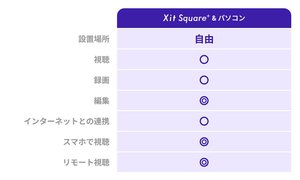 B-CASカードとアンテナ線を装着し、Windows PCとUSB接続することで、地デジ/BS/110度CSデジタル放送の3波を専用ソフトウェアから視聴および録画できる外付けチューナー。2018年発売「Xit Brick」の後継モデルの位置づけとなり、チューナーを2基搭載するため2番組同時録画にも対応。一方で筐体デザインは、2023年発売の「Xit Square」と同等のシンプルかつ手のひらサイズを採用。Xit Brickと比較して約63%小型となっている。