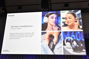 また、ポータブルイヤホンの分野では「EAH-AZ80」のカラーバリエーションや、パナソニックブランドからワイヤレスヘッドホン、完全ワイヤレス2モデルを紹介。ワイヤレスヘッドホン「RB-600B」は、65時間再生のバッテリーライフを実現したモデルで、欧州では来月発売予定。完全ワイヤレス「RZ-B120W」はエントリー層をターゲットにしたモデルとのことで、IPX4防水機能や、単体6時間半、充電器併用で19時間半の使用をサポートするとのこと。こちらも欧州にて来月の発売を見込んでいるという。