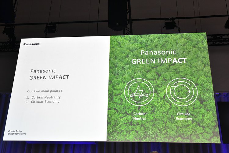 プレゼンテーションには、パナソニック マーケティング ヨーロッパの片山英樹社長が登壇。CO2排出量の削減と回避、循環型経済を支えるビジネスモデルの構築を目標とする「GREEN IMPACT」施策について説明した。