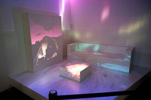 なお、HORIZON S Maxは、最新の独自光源技術「デュアルライト2.0テクノロジー」を搭載しているのも大きな特徴。この技術を説明するため、ブース内には光学部分の分解模型がディスプレイされており、内部構造がよく分かるようになっていた。