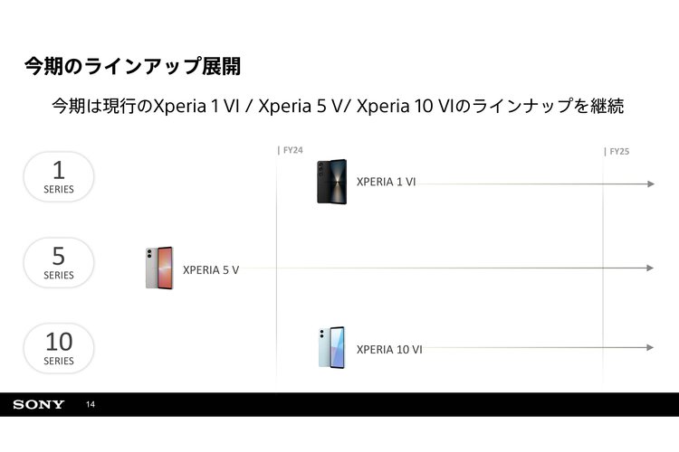 そういった点も総合的に捉え、2024年度は現行のXperia 1 VIとXperia 10 VI、そして2023年度に発売したXperia 5 V、この3機種によるラインナップを継続していくと説明した。