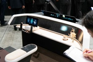 さらに、「次世代Cockpit」ブースでは、AIが搭乗者を認識する「カメラ一体型Display+車内モニタリングカメラ」をはじめ、AIと連動した情報提示が可能な「大画面ヘッドアップDispley」、物理UIを兼ねたマルチインターフェース「Texture Display+Click Display」が導入された運転空間を演出。クラウドレスでリアルタイムに文字起こしが可能でセキュリティ対策を施した「スマート会議ソリューションユースシーン」が並んでいた。