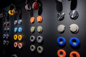 本製品における大きなポイントが、アウターキャップとイヤークッションを取り替えて見た目のカスタマイズをできることだ。デザインはジェイク氏とCMF(色・素材・仕上げ)チームによって行われており、アウターキャップ/イヤークッションは別売のオプション品も含めて7種類ずつを用意。