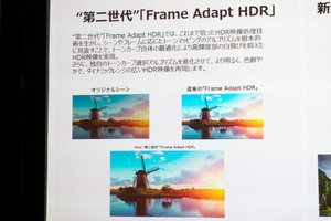 独自機能として第2世代「Frame Adapt HDR」を搭載。同社が培ってきたHDR映像処理技術を活かし、シーンやフレームに応じたトーンマッピングのアルゴリズムを見直し、トーンカーブ自体を最適化することで、白飛びを抑えながらも明るく、色鮮やかでダイナミックレンジの広い映像表現を叶える。画質モードでは、「Frame Adapt HDR1」と「Frame Adapt HDR2」の2種類を用意している。