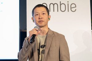 本日の製品発表にあわせ、SHARE GREEN MINAMI AOYAMAにてメディア向け新製品発表イベントを実施。この度発表されたAM-TW02の説明とともに、耳を塞がない “ながら聴きイヤホン” というカテゴリに絞った商品訴求を続けるambieの取り組みについて、代表取締役 三原良太氏によるプレゼンテーションが行われた。