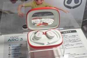Cleerブースでは、オープンイヤー型完全ワイヤレスイヤホン「ARC 3」から、ゲーミング向けの「ARC 3 Gaming」を展示。また、10月31日より一般販売開始を予定している「ARC 3 Max」の参考展示を行う。
