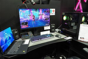 MSIブースでは、ゲーミングノートPCやモニター、ポータブルゲーミングPCや、PC自作用のデバイス各種など、さまざまな製品を展開する。