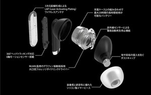 初代モデル「SkeLeTon」で好評を博した、各部に透明パーツを使用した “トランスルーセントデザイン” や1万円を切る価格を受け継ぎつつ、音質/機能面を強化したという完全ワイヤレスイヤホン。
