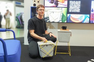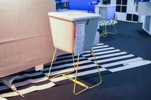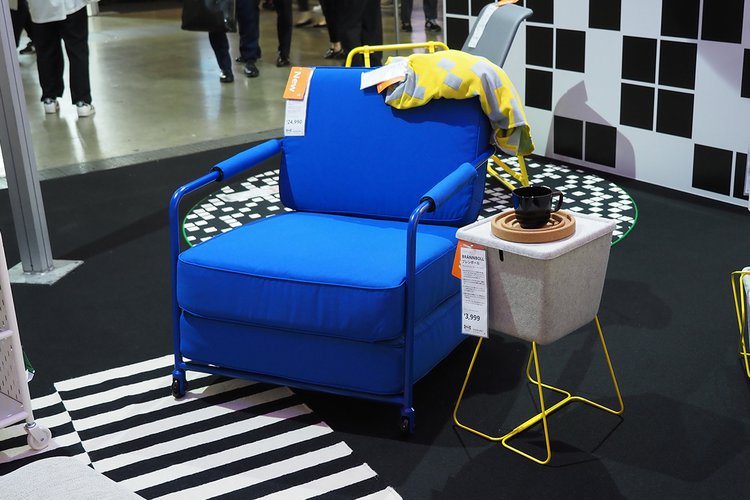 ブースを案内してくれたのは、イケアシニアデザイナーのDavid Wahl(ダーヴィッド ヴァール)氏と、IKEA of Sweden商品デザイン開発担当のPhilip Dilé(フィリップ ディル)氏。各アイテムがリビング/プレイベートルーム/寝室など、さまざまなシーンに合わせて配置されているなかで、ラウンジチェア2モデルと、イージーチェア、ステーション、バスケットの5つをピックアップしてくれた。
