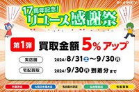 これを記念して同社では、対象製品の買取金額を最終査定金額から10%アップするキャンペーンを開催。本日10月1日(火)から31日(木)までの買取がキャンペーン期間となり、宅配買取の場合は10月31日到着分までがキャンペーン対象となる。対象店舗はe☆イヤホン秋葉原店/大阪日本橋本店/名古屋大須店/仙台駅前店および宅配買取。